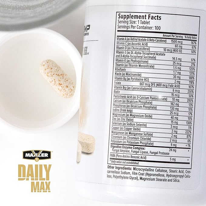 مولتی ویتامین دیلی مکس مکسلر 120 عددی Maxler Daily Max به تکمیل رژیم غذایی شما کمک می کند. 13 ویتامین و 10 ماده معدنی در مولتی ویتامین دیلی مکس مکسلر Maxler Daily Max وجود دارد. برای حفظ سلامتی، افراد باید ویتامین ها و مواد معدنی کافی دریافت کنند. استرس، سرعت سرسام آور و سبک جدید زندگی، خواب و اختلالات غذایی می تواند بدن انسان را مستعد ابتلا به کمبود این ریزمغذی ها کند. غذا به عنوان منبع طبیعی ویتامین ها و مواد معدنی عمل می کند. اما وقتی نوبت به موقعیت های استرسزا، افزایش فعالیت فیزیکی یا ذهنی می رسد، به منبع دیگری نیاز دارید تا با تمام جنبه های زندگی خود هماهنگ باشید.